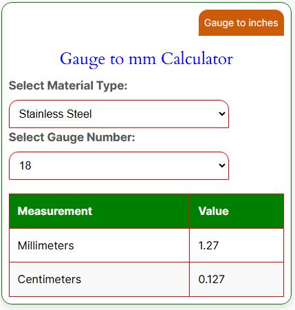Are you trying to find the exact thickness in millimeters for a specific gauge? Our Gauge to mm Calculator makes it simple to effortlessly convert gauge values into millimeters. Select material type & gauge number and get accurate results in seconds!