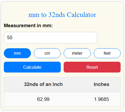 Example 3: Convert 50 mm to 32nds