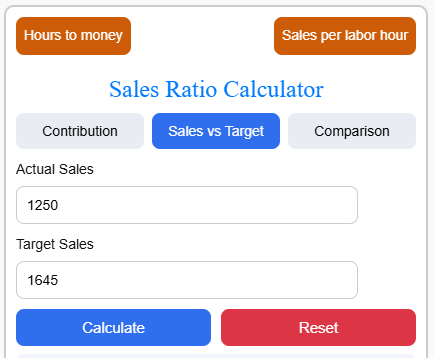 Sales ratios are widely used in business and retail to understand how various sales figures relate to one another. By analyzing these ratios, businesses can quickly see which products, categories, or channels contribute the most to overall revenue. This Sales Ratio Calculator helps you measure sales contribution, compare performance against targets, and evaluate the relationship between two sales values.